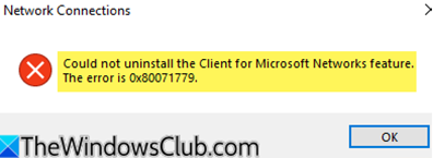 无法卸载 Microsoft 网络客户端功能。错误是0x80071779。