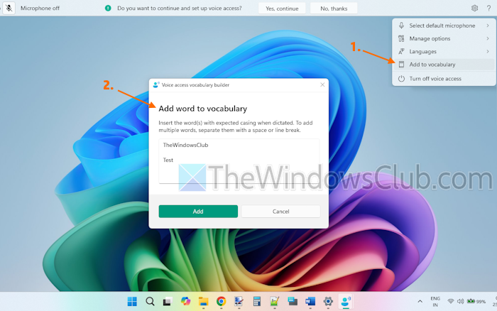 这是到达的步骤将单词添加到语音访问词汇在Windows 11个人电脑:
