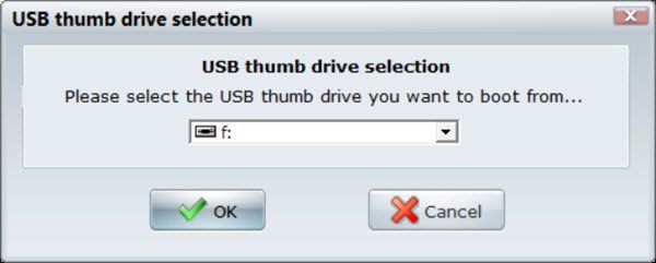 将打开以下窗口。选择已连接的 USB 驱动器,然后单击“确定”。
