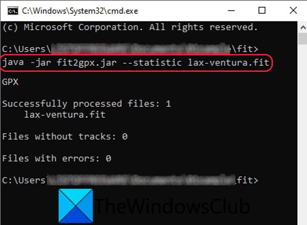 Fit2gpx 是一款免费、可移植且基于命令的 FIT 到 GPX 文件转换器。要使用它执行转换,您需要在命令提示符中输入相应的命令。让我们看一下使用命令将 FIT 转换为 GPX 的排序过程: