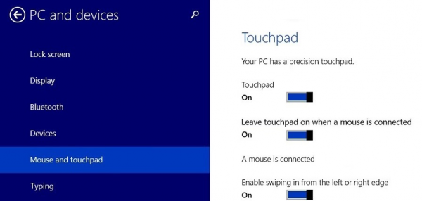 当外部鼠标或指点设备连接到 Windows 8.1 时禁用触摸板