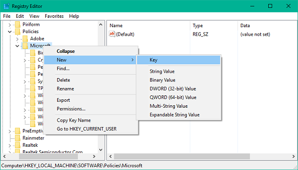 HKEY_LOCAL_MACHINE\SOFTWARE\Policies\Microsoft