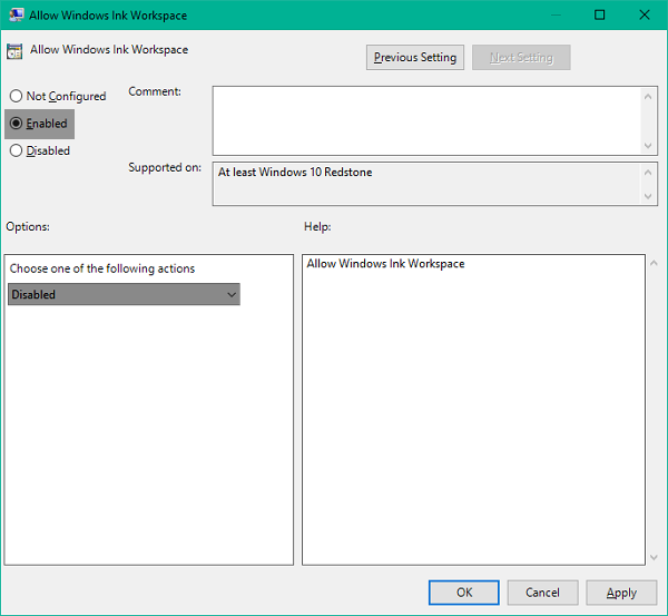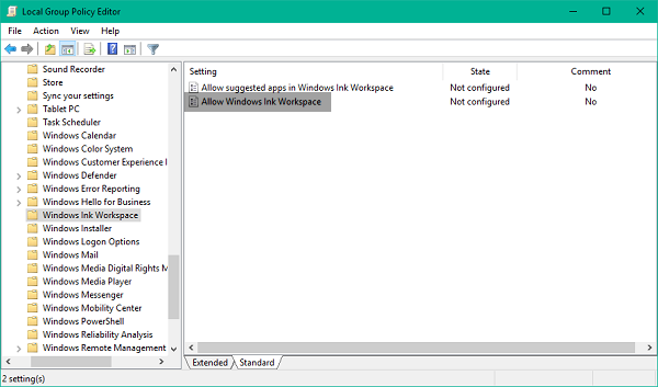 使用组策略编辑器关闭 Windows Ink 工作区。