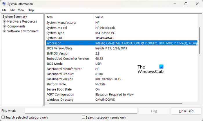 你可以查看您的 CPU 型号通过使用称为系统信息的 Windows 内置工具。请按照下列步骤操作: