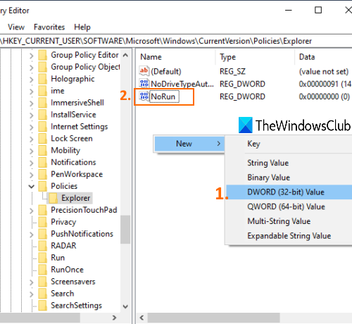 HKEY_CURRENT_USER\SOFTWARE\Microsoft\Windows\CurrentVersion\Policies\Explorer