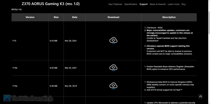 假设您很久以前下载了该文件,从那时起,您的计算机上发生了很多事情。在这种情况下,如果该文件以任何方式损坏,则无法使用它来更新 BIOS。这就是为什么我们建议您再次下载该文件。强烈建议仅从主板制造商的官方网站获取。