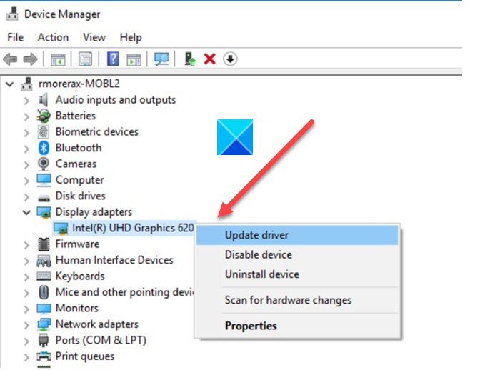 过时的显卡驱动程序可能会导致此错误代码 0x00001338 N。因此,您需要检查是否有适用于您的显卡驱动程序的更新并下载它。
