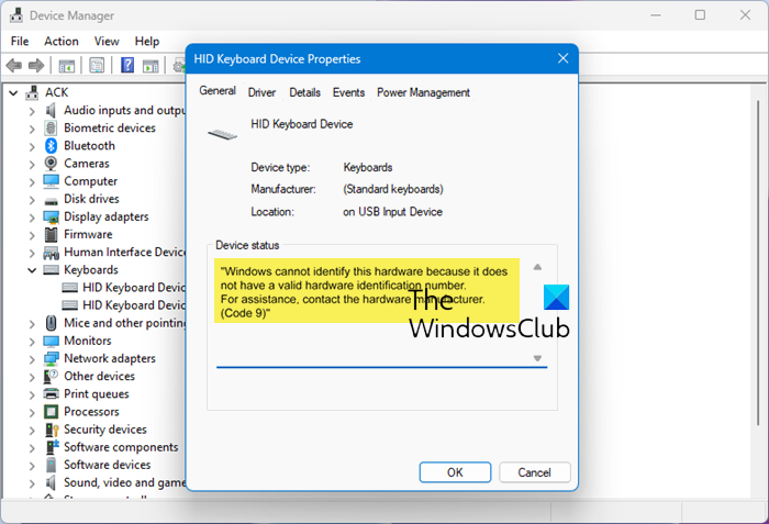 - 双击驾驶员,显示警告标志以打开其特性。阅读设备状态消息下方一般的选项卡。它将显示错误代码和错误消息。
