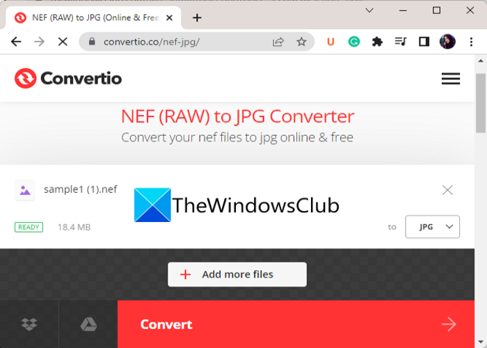 您可以尝试的另一个在线工具是转换。 它可以让您轻松地将 NEF 图像转换为 JPG、PNG、TIFF、BMP 和许多其他格式。 以下是使用它转换 NEF 图像的步骤: