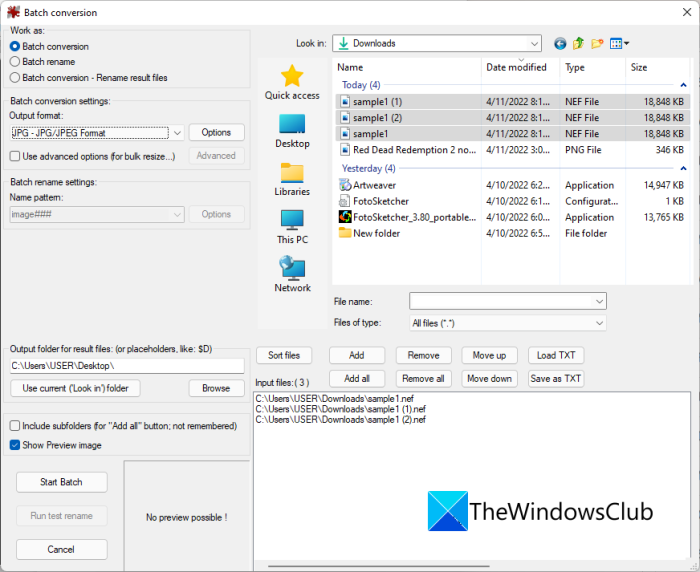 是一款批量 NEF 到 JPG、PNG、GIF、BMP 和 TIFF 转换器软件。 它基本上是一个图像转换器,可让您批量转换图像。 您可以按照以下方法执行此操作: