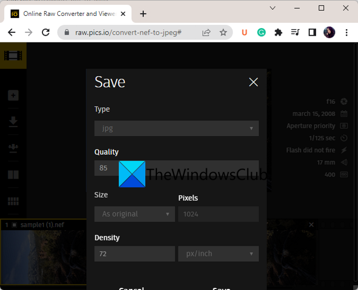 - 最后,单击“保存”按钮将 NEF 转换为 JPG 或 PNG。