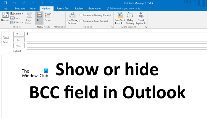 - 要在 Outlook 中隐藏密件抄送字段,请再次单击密件抄送字段。