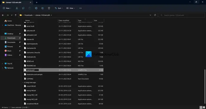- 从那里复制这两个文件并将它们粘贴到 ClamAV 安装文件夹中。