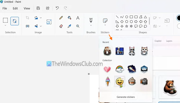 在本教程中,我们将向您展示如何使用油漆应用在Windows 11/10上制作贴纸。我们可以使用一个名为的新功能来执行此操作贴纸发生器在油漆应用中。这是AI功能的功能Copilot+ PC使用的是(NPU)用简单的文本提示创建自定义贴纸。您无需担心模板,设计元素或进行任何手动工作。根据您的文本描述,它将生成一组可以在艺术品上使用的贴纸。