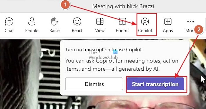 - 如果您迟到了会议,为了确保生成会议的整个转录,请确保其他人启用副驾驶转录在开始时。