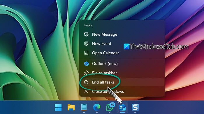如果你有右键单击上下文菜单,您还可以使用它来终止所有相关的 Outlook 进程。