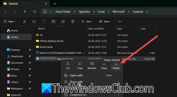 - 现在,打开文件资源管理器然后转到%localappdata%\ Microsoft \ Outlook。