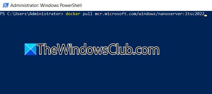现在您的服务器已启动,我们需要您打开电源外壳再次具有管理员权限。然后,您必须运行以下命令来拉取 Docker 映像。