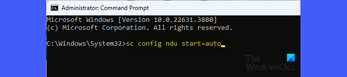 sc config ndu start=auto