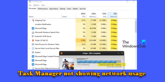 如果任务管理器不显示网络使用情况在 Windows 11/10 电脑上,请阅读这篇文章以了解如何解决该问题。网络使用量是指计算机通过网络发送和接收的数据量。这包括来自互联网浏览、上传、下载以及各种应用程序或系统进程执行的其他网络活动的数据。