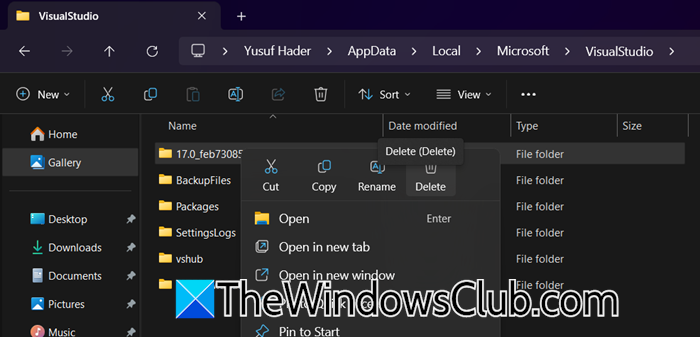 - 从文件资源管理器:打开文件浏览器和%LocalAppData%\Microsoft\VisualStudio\17.0_<ID>和%LocalAppData%\Microsoft\VSCommon文件夹