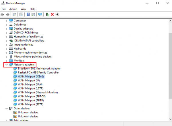 按 Win+X 并单击“设备管理器”将其打开。在按字母顺序排列的列表中,找到“网络适配器”并单击其前面的向前箭头。