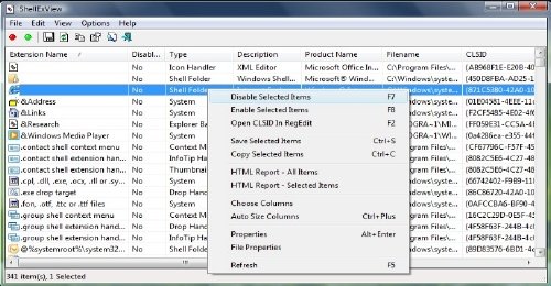 它可以让您查看和禁用可疑的第 3 方 shell 扩展。 使用试错法,您可以禁用/启用扩展来尝试确定它们中是否有任何一个导致了问题。 ShellExView也可以用于解决上下文菜单资源管理器中的问题,例如右键单击速度缓慢。