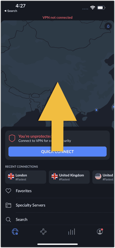 - 启动 NordVPN 应用程序,然后点击并滑动下部面板。