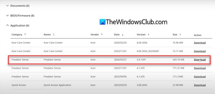一旦有序列號,請轉到Acer的支持網站。導航到驅動程序和手冊並在搜索欄中輸入序列號。接下來,找到捕食者申請。您可能會看到該應用程序的多個版本。按日期對列表進行排序,然後下載最新版本。