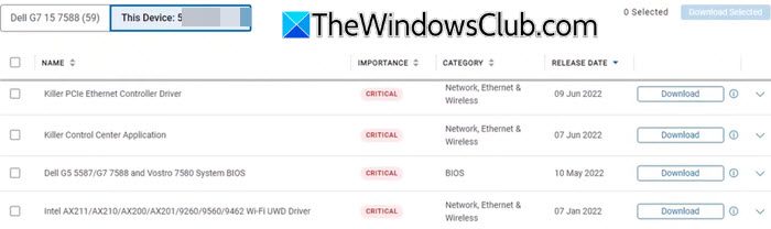 安裝為您的設備列出的所有關鍵和可選驅動程序,然後重新啟動您的電腦。 Dell SupportAssist 現在應該可以正常工作。