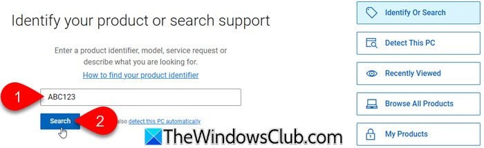 找到服務標籤在您的戴爾設備上(通常在筆記本電腦下方或台式機背面的貼紙上),然後在指定字段中輸入服務標籤號。點擊搜尋讓網站自動識別您的系統。