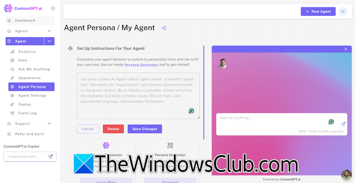 - 24×7支持:為客戶提供24×7的支持需要良好的投資,因為您必須僱用不同的員工白天和夜班。在您的基於Windows的支持平台中添加CustomGpt AI代理24/7提供客戶支持。因此,Customgpt AI還有助於降低業務成本。
