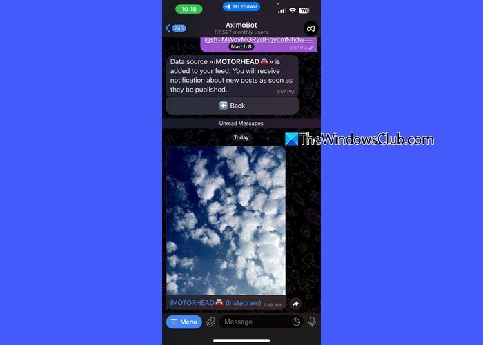 另外,請記住,通知可能不是即時的,更新可能需要一些時間才能反映。當我向 AximoBot 添加 Instagram 帳戶時,我注意到響應有所延遲。雖然機器人成功跟踪了該帳戶,但大約需要 24 小時才會出現更新。這種延遲可能是由於機器人的更新間隔或其獲取數據的方式造成的。