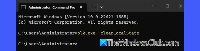 有時,損壞或過時的本地數據會阻止 New Outlook 連接到郵箱。通過清除本地狀態,您可以強制 Outlook 重新啟動。該應用程序會重建緩存並重新連接到您的帳戶,就像第一次設置一樣,通常可以解決登錄和同步問題。