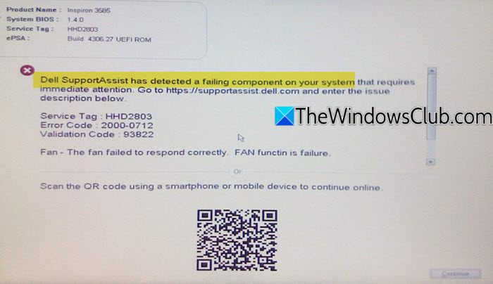 Dell SupportAssist 檢測到出現故障的組件:風扇或處理器風扇