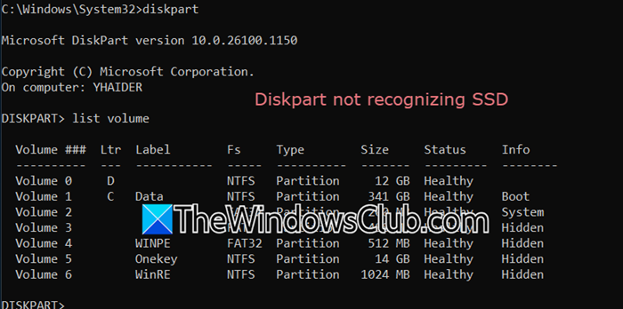 最後,打開Diskpart並檢查是否檢測到新驅動器。