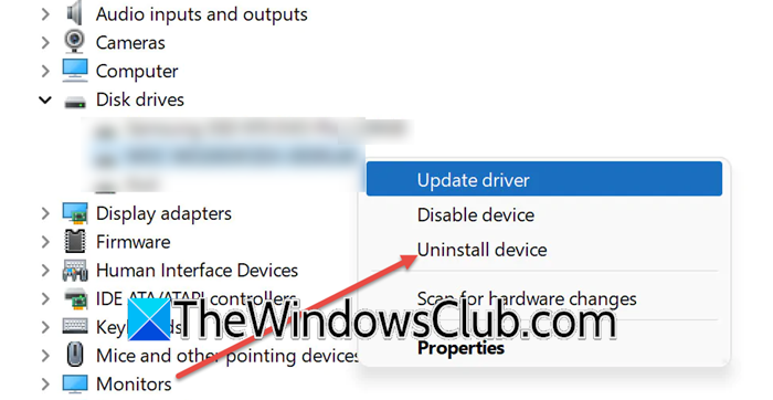 如果您可以啟動到 Windows 並且該設備在設備管理器中可見,但 diskpart 能夠識別它,請嘗試卸載該設備,然後重新安裝。為此,請按照下面提到的步驟操作。