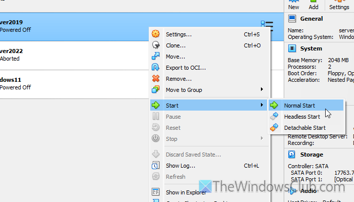 Guest Additions 包含設備驅動程序和一些系統應用程序,可幫助您在使用虛擬機時獲得更好的用戶體驗。這就是為什麼建議。為此,您需要首先啟動虛擬機。為此,右鍵單擊虛擬機並選擇開始 > 正常啟動。