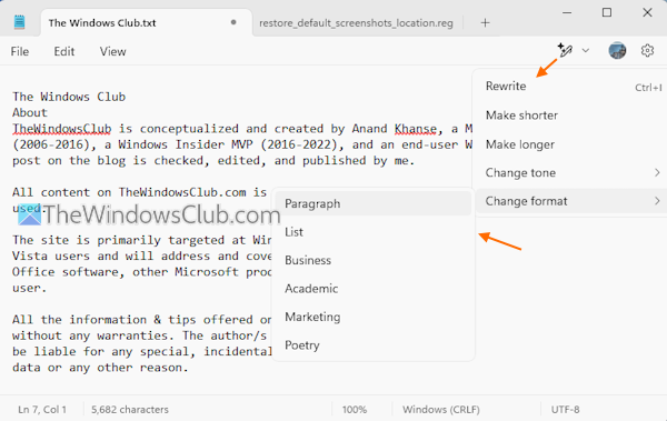如何在 Windows 11 上的記事本中使用 Rewrite