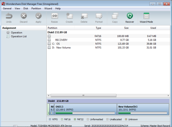Wondershare Disk Manager 是一個用於管理磁盤和分區的便捷工具。它允許您創建、刪除、複製和恢復分區。在運行時,它可以幫助您分配磁盤空間並重組硬盤以最大限度地利用。其嚮導模式和專家模式分別使新手和專家用戶都能輕鬆管理分區。