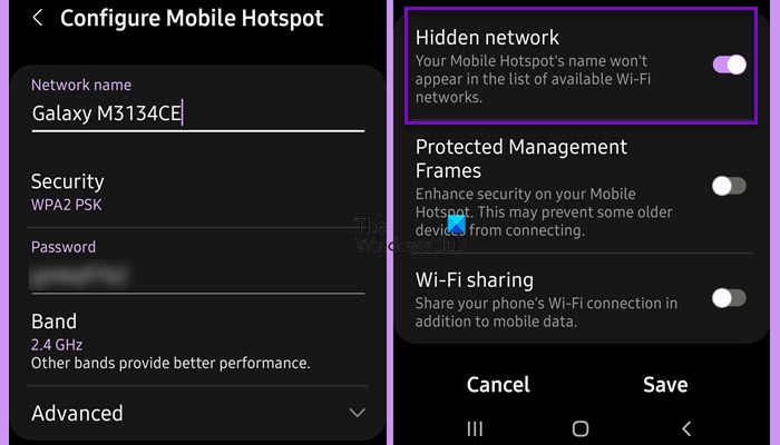 要使用手機創建隱藏的 WiFi 熱點,您需要進入手機上的熱點設置,然後進入高級選項,並允許隱藏網絡。我們建議您查看上述步驟來執行相同的操作。但是,如果您想對路由器隱藏 WiFi,請轉至路由器的設置,然後啟用隱藏網絡。