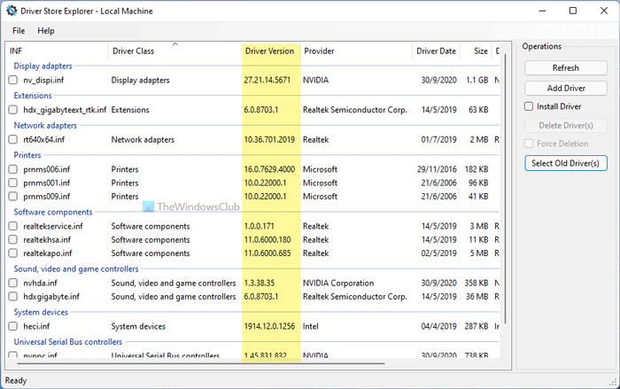 有一些第三方軟件可以幫助您查找已安裝驅動程序的版本。例如,您可以使用。它是免費的開源軟件,您可以從 github.com 下載。在 Windows 11/10 計算機上下載並打開此工具後,您需要檢查驅動版本柱子。除了驅動程序版本之外,它還顯示驅動程序類別、製造商、日期、大小、設備名稱等。