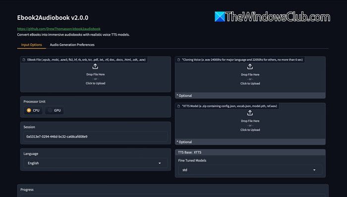 電子書2有聲書XTTS是一個將電子書轉換為有聲讀物的開源工具。它利用用於電子書轉換,以及庫克 XTTSv2和費爾序列用於高質量的文本到語音合成(兩者都使用人工智能進行語音和語言處理)。