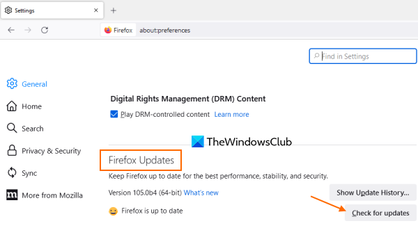 按照以下步驟使用 Windows 11/10 上的“設置”頁面更新 Firefox 瀏覽器: