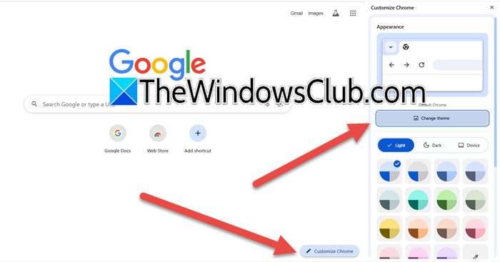 - 現在,單擊自定義 Chrome從右下部分冒出氣泡。