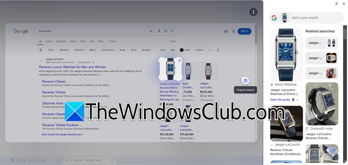 要使用此功能,請選擇地址欄中的 Google Lens 圖標。然後,單擊或拖動您要搜索的任何內容。您還可以通過右鍵單擊或使用三點菜單來訪問 Google Lens。做出選擇後,您將在側面板中看到視覺匹配和結果。或者,您可以右鍵單擊並選擇使用谷歌鏡頭搜索。