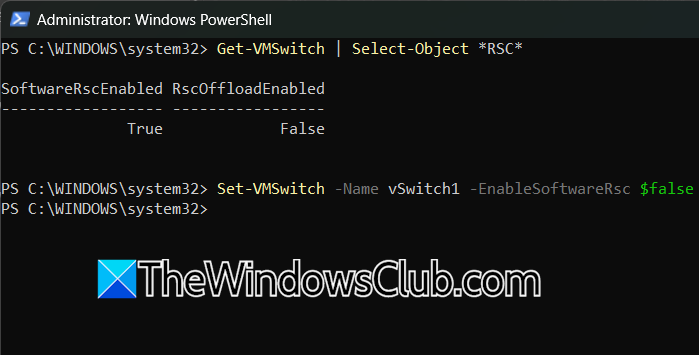 Get-VMSwitch | Select-Object *RSC*禁用特定虛擬開關的軟件RSC。