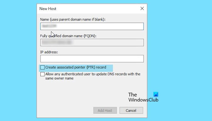 - 您將在那裡看到主機服務器的條目。我們將創建一個新條目。為此,右鍵單擊空白區域,然後單擊新主機(A 或 AAAA)。