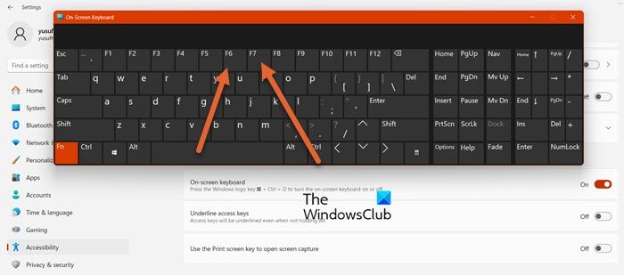 - 彈出螢幕鍵盤後,點擊Fn然後繼續F6,如果您的鍵盤仍然無法使用,請按一下Fn + F7。