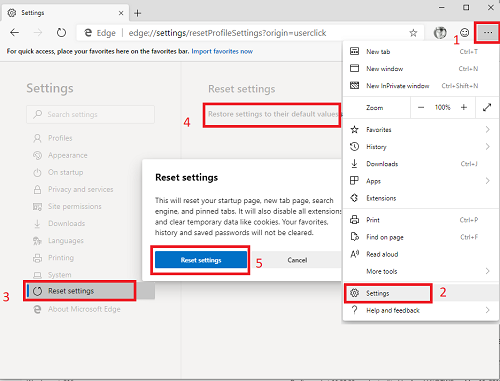 - 重置Microsoft Edge設置。